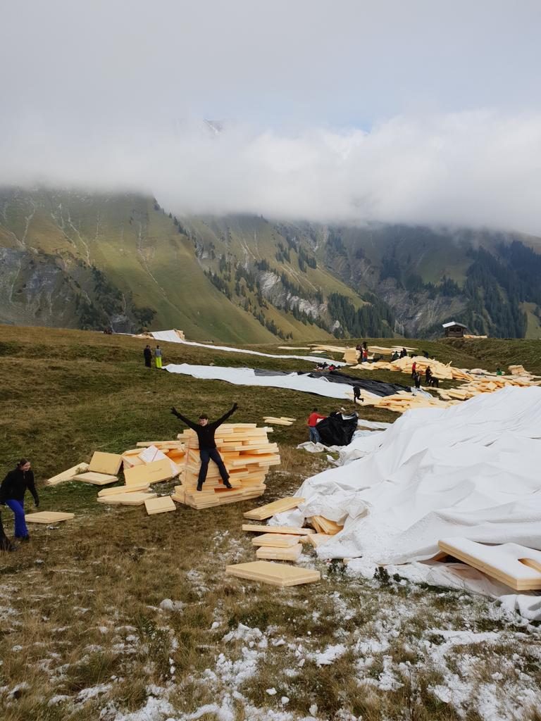 Die Unterstützung die wir von den rund 100 freiwilligen Helferinnen und Helfer, von klein bis gross, am letzten Wochenende erfahren haben, war überwältigend. Wir danken allen von Herzen. Am Samstag, 28.04., konnte zweidrittel des Schneedepots abgedeckt werden. Am Sonntag, 29.04., hat uns der Föhnsturm etwas in unserem Tatendrang eingeschränkt. Wir sind aber überzeugt mit der grossartigen Unterstützung am kommenden Samstag, 7.5.18, das Schneedepot und die restlichen rund 35 Meter abzudecken für die Übersommerung fertigzustellen.